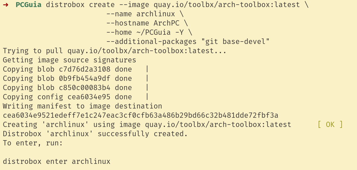 Criar um contentor Distrobox