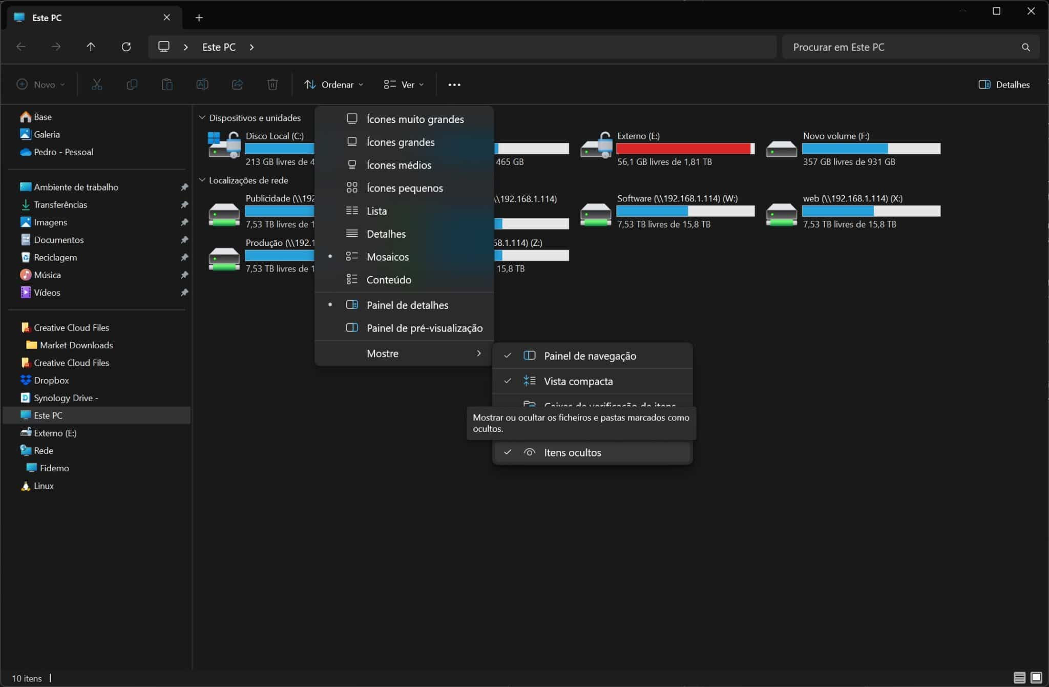 Ver ficheiros escondidos no Explorador de Ficheiros