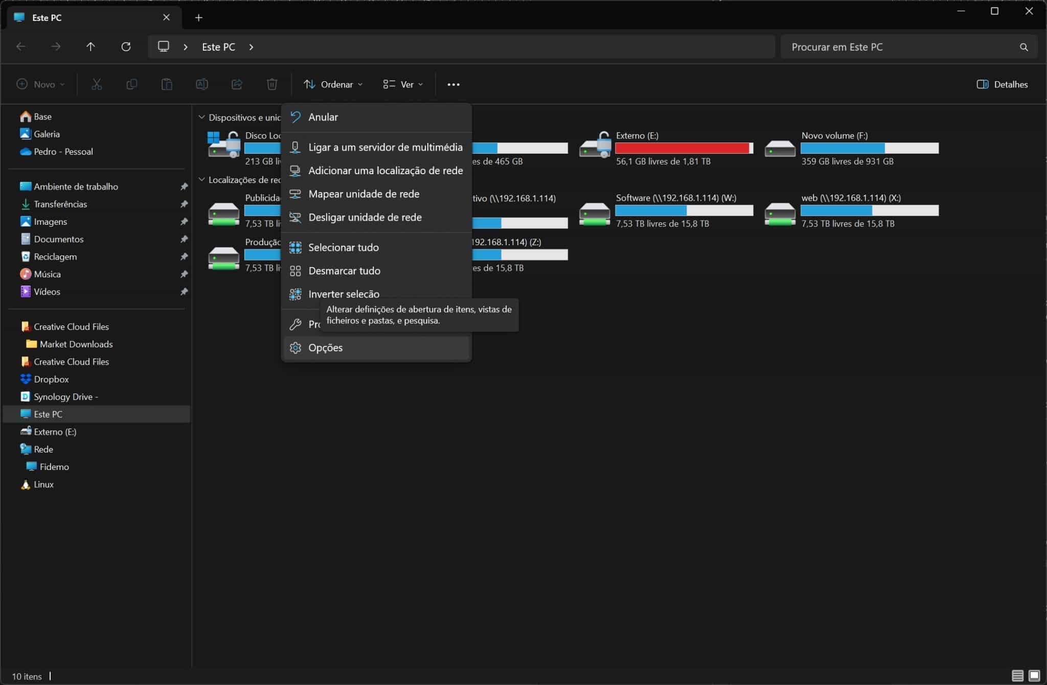 Abra o Explorador de Ficheiros e clique nos três pontos que estão no friso. No menu que surge, escolha ‘Opções’.