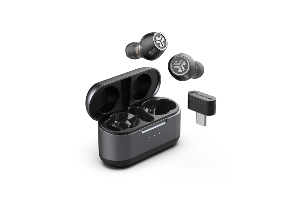 Estes auscultadores sem fios são um dos topos de gama da JLab e destacam-se dos restantes modelos pela sua caixa maior e mais robusta, que não traz o cabo de carregamento embutido como é habitual, na marca. Estes earbuds adaptam-se a vários tipos de ouvidos (são seis pontas diferentes – três de silicone, três de cloud foam) e, por isso, encaixam sem problemas – mesmo após horas de utilização, não incomodam.