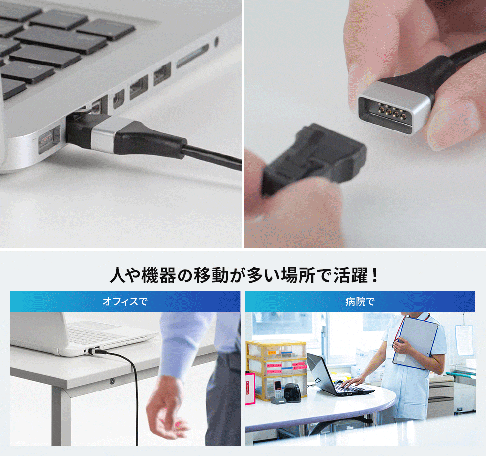 A empresa japonesa Sanwa Supply, lançou uma nova solução de ligação para cabos Ethernet que funciona de uma forma muito semelhante à tecnologia MagSafe da Apple. A gama de cabos Ethernet Sanwa KB-SL6ABA tem numa ponta do cabo uma ficha/adaptador RJ-45 que é mantida ligada ao cabo através de ímanes, na outra ponta está uma ficha RJ-45 normal.
