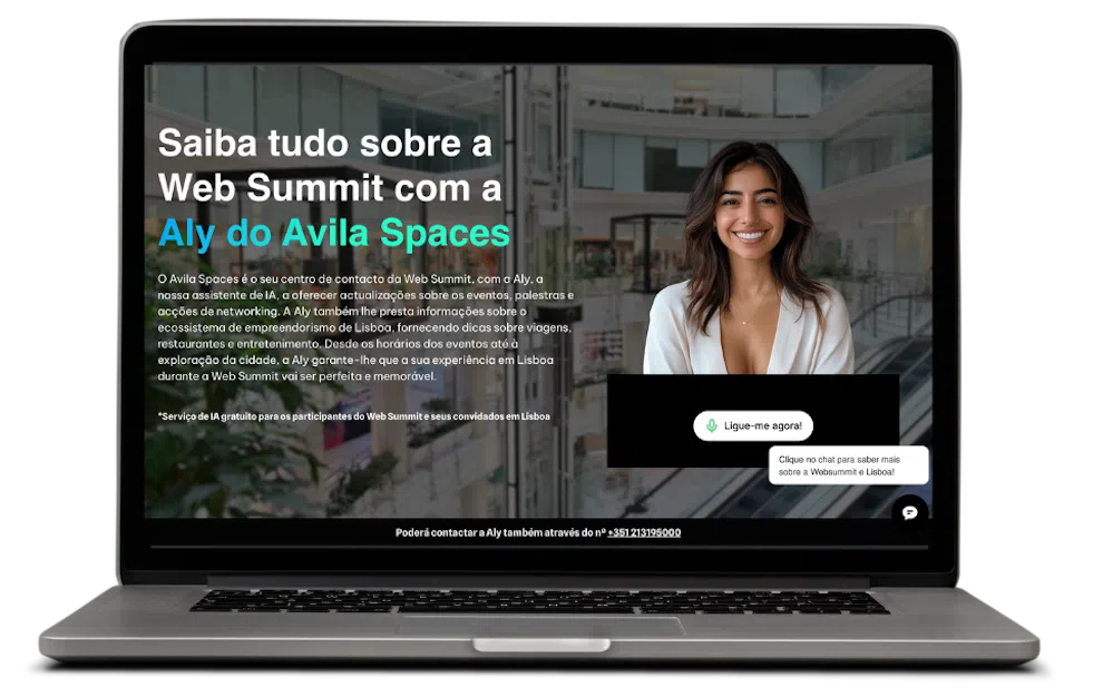 Esta plataforma foi desenvolvida em parceria com a empresa Elbo Pte, que tem um recurso de educação, igualmente baseado em IA, a StudentAI.app. Para interagir com a Aly, basta aceder ao site avilaspaces.ai/websummit-pt e escolher uma de duas formas, ambas gratuitas: chat ou uma chamada via Web. Há ainda uma terceira hipótese: ligar para 213 195 000 (o custo é o de uma chamada local).