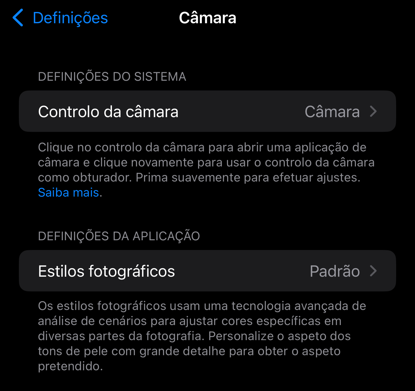 ‘Exposição’, o ‘Zoom’, a ‘Profundidade’ e os ‘Estilos’, que são uma novidade do iOS 18. Para alternar entre estes, basta deslizar o dedo sobre o ‘Controlo da Câmara’. Enquanto estiver a usar este botão, o ecrã do iPhone fica limpo de distracções e mostra uma pré-visualização mais simples que a tradicional. Este botão também pode ser configurado de várias formas para se adaptar mais às nossas preferências – estas são as cinco principais.