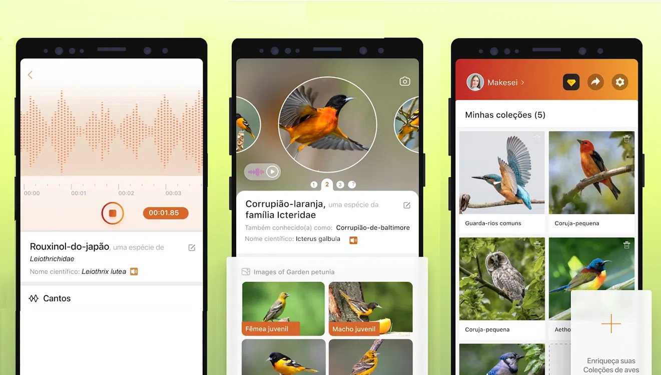 Além disso, pode saber informações sobre mais de 10 mil espécies e guardar a colecção de aves identificadas.