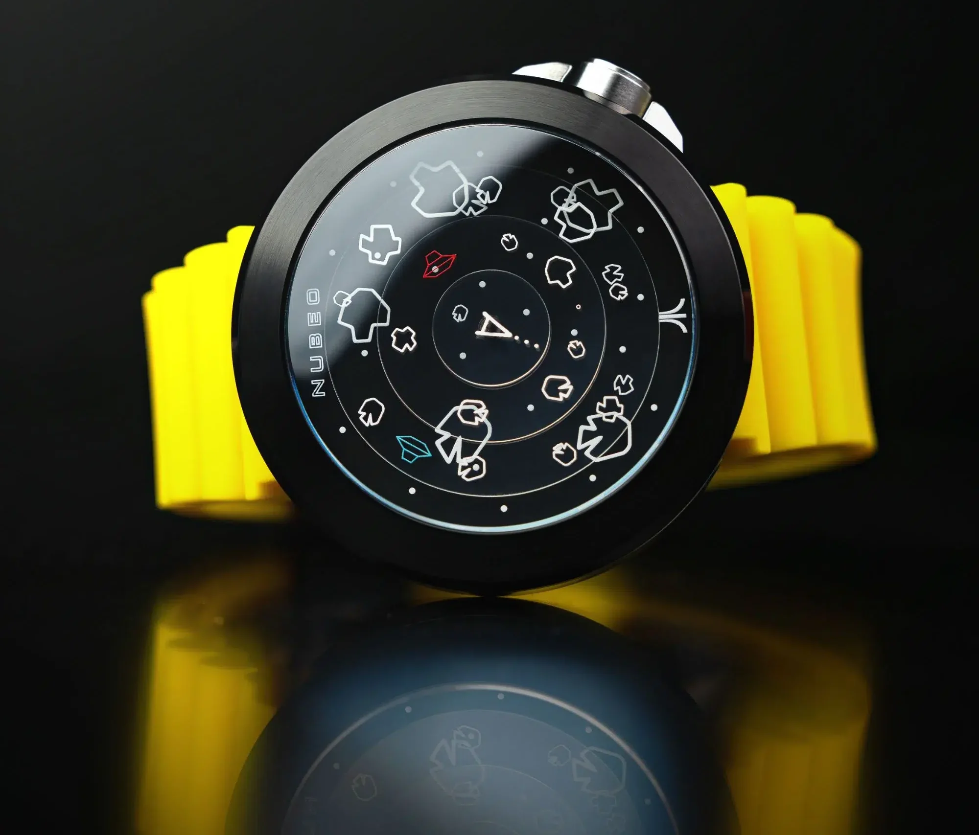 Não é imediatamente óbvio como os utilizadores devem ler as horas com estes relógios. Utilizam um movimento automático japonês que move três discos. O mais pequeno dos três, no centro, apresenta a nave triangular original do Asteroids a disparar os seus projécteis. A imagem da nave funciona como o ponteiro dos segundos do relógio. Os dois discos exteriores estão cheios de asteróides, que funcionam como os ponteiros dos minutos e das horas.