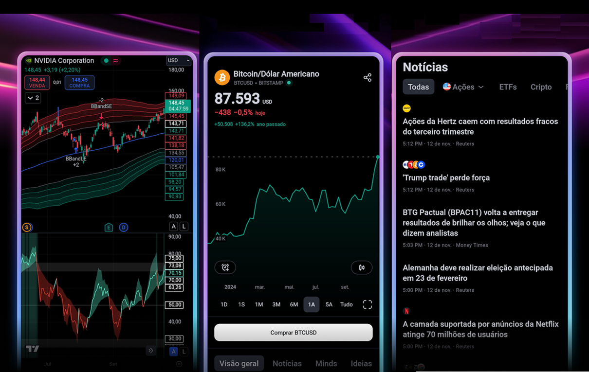 Além disso, pode receber alertas, prever tendências, estar sempre a par das movimentações e principais notícias e antecipar subidas/descidas para fazer bons negócios.