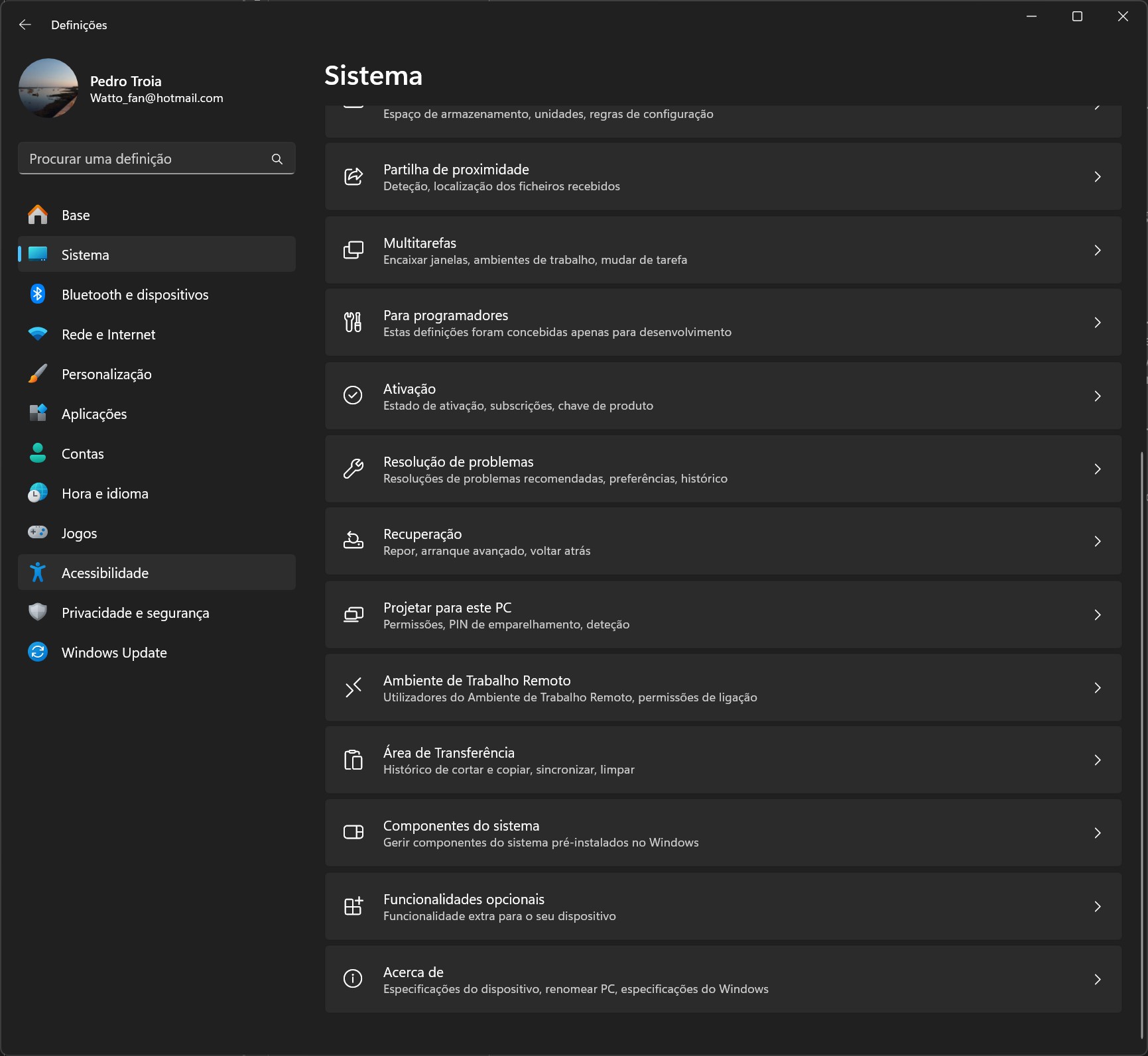 Abra as Definições do Windows (menu ‘Iniciar’, ‘Definições’ ou tecla Windows + i) e clique em ‘Sistema’ na coluna da esquerda.