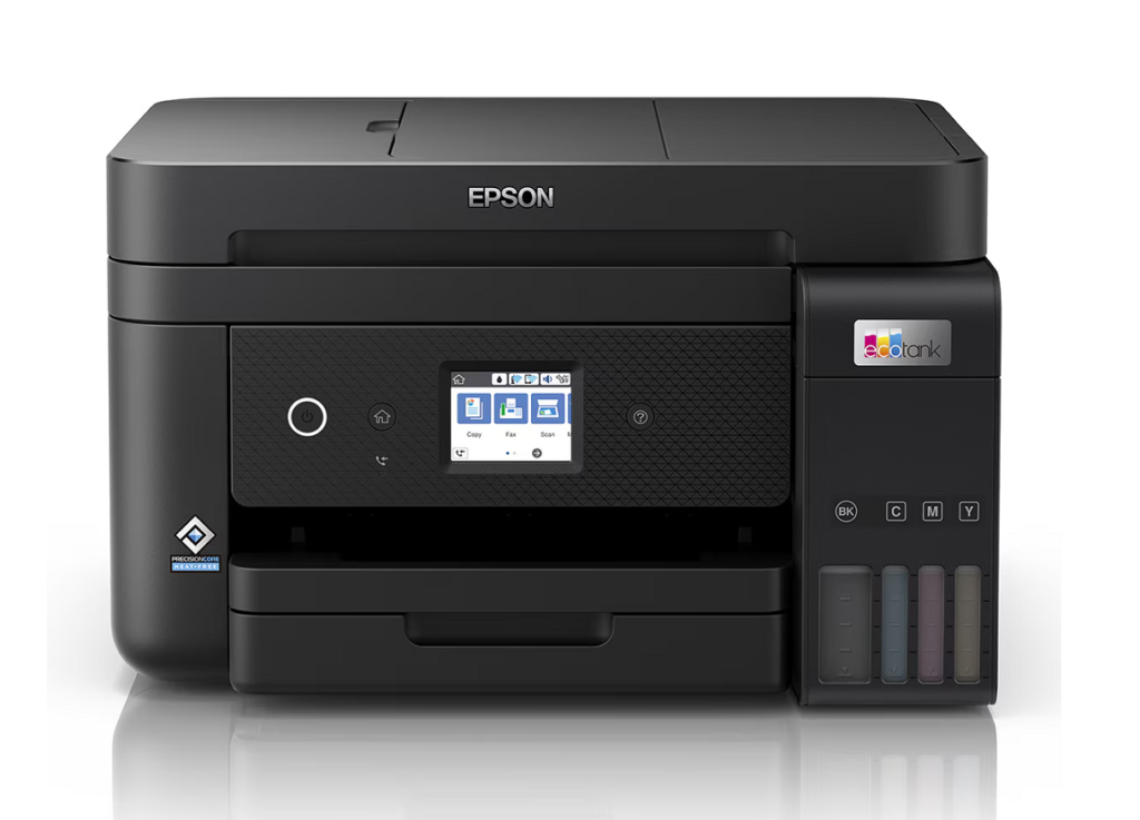 Tal como todos os dispositivos multifunções, também este dispõe de um scanner com alimentador automático de folhas – o único senão é que só pode digitalizar apenas de um dos lados, de cada vez. No que toca ao sistema de impressão, como o nome ‘EcoTank’ indica, a tinta é carregada em quatro depósitos, um para cada cor: amarelo, ciano, magenta e preto. Este sistema oferece a vantagem de baixar o custo por página, porque os frascos de tinta são mais acessíveis que os cartuchos tradicionais e, muitas vezes, permitem imprimir mais folhas antes de terem de ser cheios outra vez. Mas, no outro lado da moeda, as cabeças são as mesmas e têm a tendência de ficarem entupidas mais facilmente, se a impressora estiver parada durante muito tempo. Um aspecto intrigante é que a ET-4850 ainda traz um fax, algo que já não víamos há algum tempo e que, francamente, não percebemos, ainda por cima quando se destina ao mercado doméstico e semiprofissional.