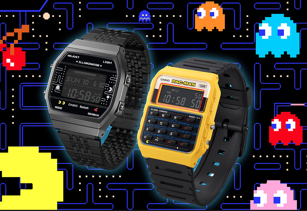 Em ano de 45.º aniversário, o jogo criado pelo japonês Tōru Iwatani para a editora Namco é o protagonista de uma colecção Casio com quatro relógios: A168WEPC, F-91WPC, ABL-100WEPC, CA-53WPC. | Leia o artigo completo no TRENDY Report.