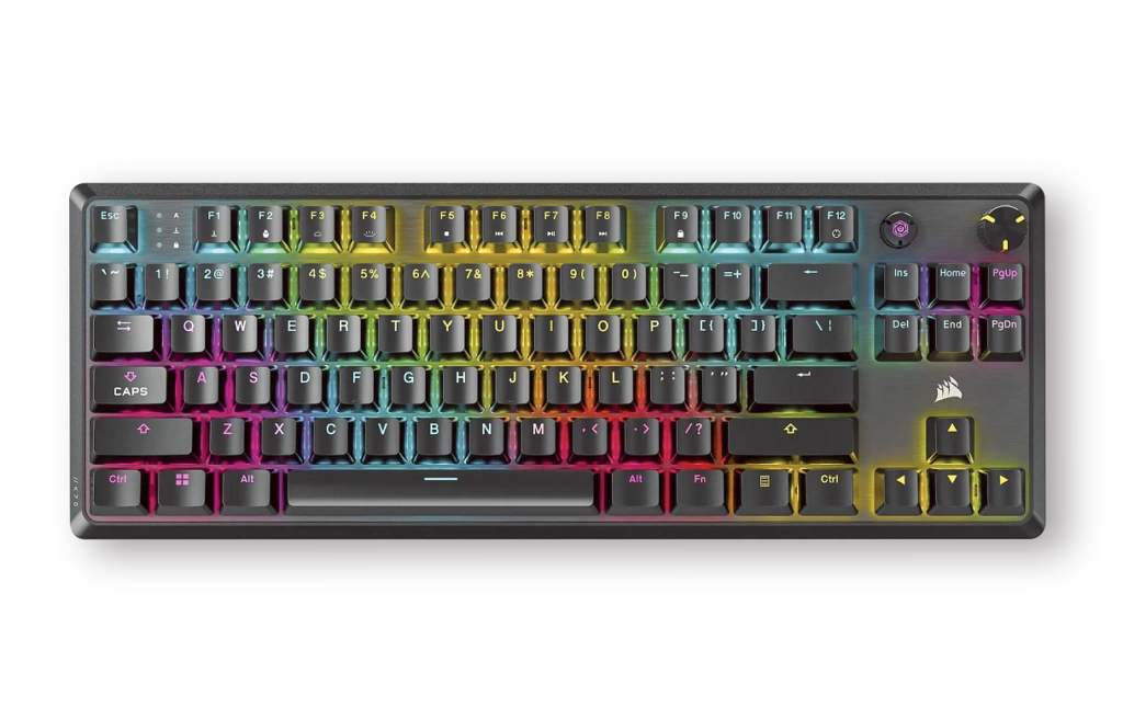 Os teclados de pequenas dimensões estão definitivamente na moda e quem é fã de gaming sabe que um teclado completo é um desperdício de espaço – por isso, todas as marcas de acessórios para jogos oferecem opções deste tipo. O K70 Core TKL (acrónimo de ‘ten key less’, uma referência a não ter o teclado numérico do lado direito) tem uma construção em metal e plástico que lhe confere uma grande resistência. Os interruptores são MLX Red da Corsair certificados para até setenta milhões de activações, descem 40 mm quando se prime uma tecla e vêm pré-lubrificados de fábrica para oferecerem um movimento mais suave.