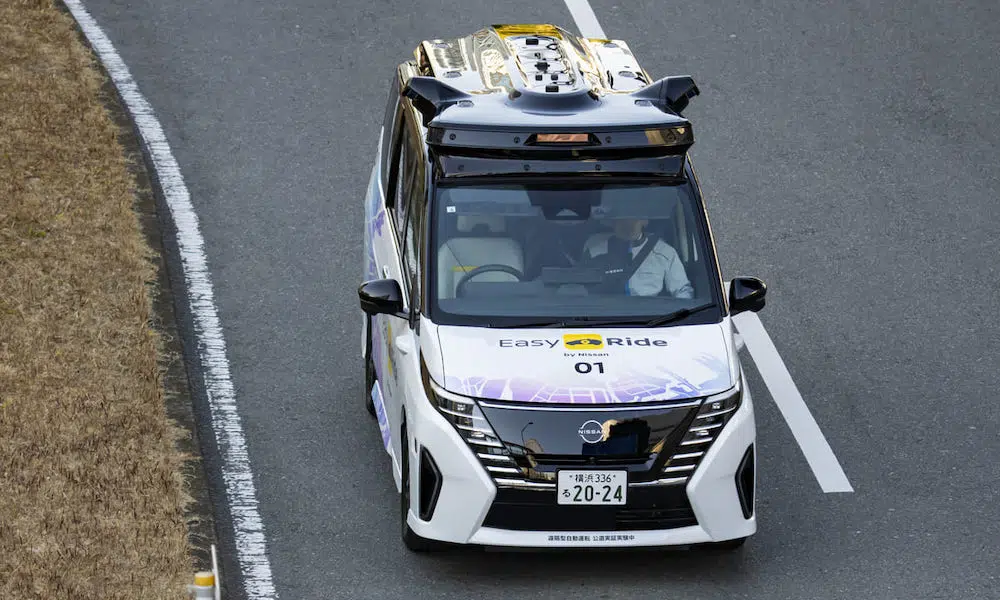 Desta vez, com uma carrinha Serena (não é vendida em Portugal), a presença humana foi eliminada: «Pela primeira vez no país, um veículo de teste sem condutor movimentou-se numa via pública, num ambiente urbano complexo».