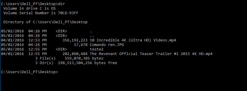 Por exemplo, se quiser usar a linha de comandos com os ficheiros que estão gravados no seu Ambiente de Trabalho escreva ‘cd ambiente de trabalho’ (sem as plicas) e prima enter. Se estiver a usar o Windows em inglês escreva ‘cd desktop’ (sem as plicas) e prima enter.