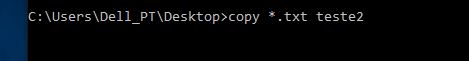 Para tal, em vez de nos referirmos a cada ficheiro pelo nome, substituímo-lo por um asterisco. Por exemplo, se quisermos copiar todos os ficheiros de extensão ‘.jpg’ da pasta onde estamos para uma outra chamada teste que está na raiz da drive C: fazemos o seguinte: