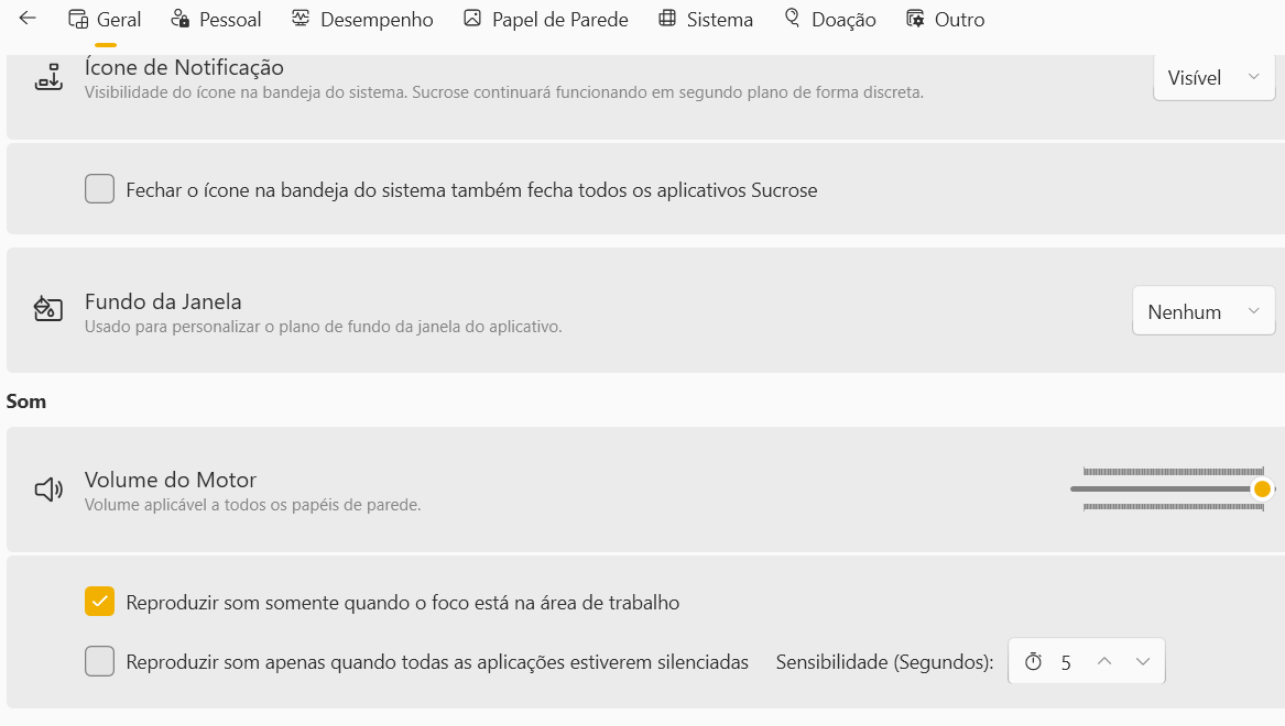 4 – Como alguns wallpapers têm som, isto pode não ser o ideal quando estiver a trabalhar. Para fazer com que apenas haja áudio quando estiver sem janelas abertas no Windows, clique no ícone da engrenagem (canto superior direito) e, em ‘Geral’, marque a opção ‘Reproduzir som somente quando o foco está na área de trabalho’.