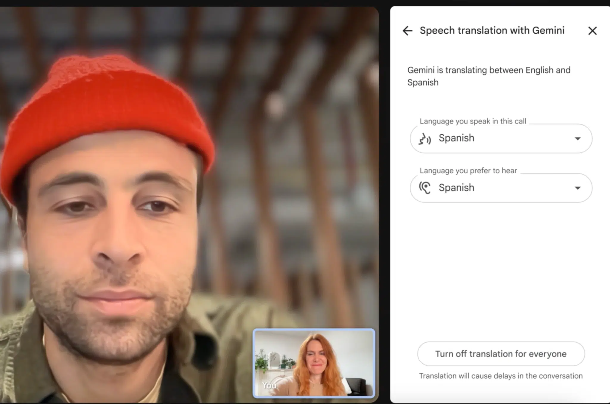 O Google Meet vai receber uma nova funcionalidade que traduz a voz dos utilizadores para o idioma preferido dos interlocutores em tempo quase real. A funcionalidade suporta apenas inglês e espanhol por enquanto. Está em testes beta para subscritores do Google AI Pro e Ultra.