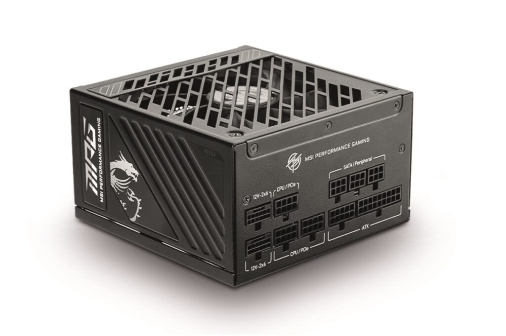 Um aspecto interessante é o facto de, na caixa, vir um par de cabos 12 V 2×6, dos que são usados nas novas placas gráficas da Nvidia. Estes, cabos podem transportar até 600 W, o que é estranho para uma fonte que apenas chega aos 1000. Por outro lado, apenas inclui um cabo PCIe (mas há ligações para mais), o que faz com que não seja muito indicada para usar com placas gráficas antigas ou com as novas da AMD, que precisam de três ligações de oito pinos. Voltando aos cabos 12 V 2×6, para evitar ligações deficientes que podem levar ao sobreaquecimento do cabo, as fichas da MSI têm pinos amarelos. Quando se instala o cabo, se alguma parte amarela estiver à vista, é porque o cabo não está bem inserido.