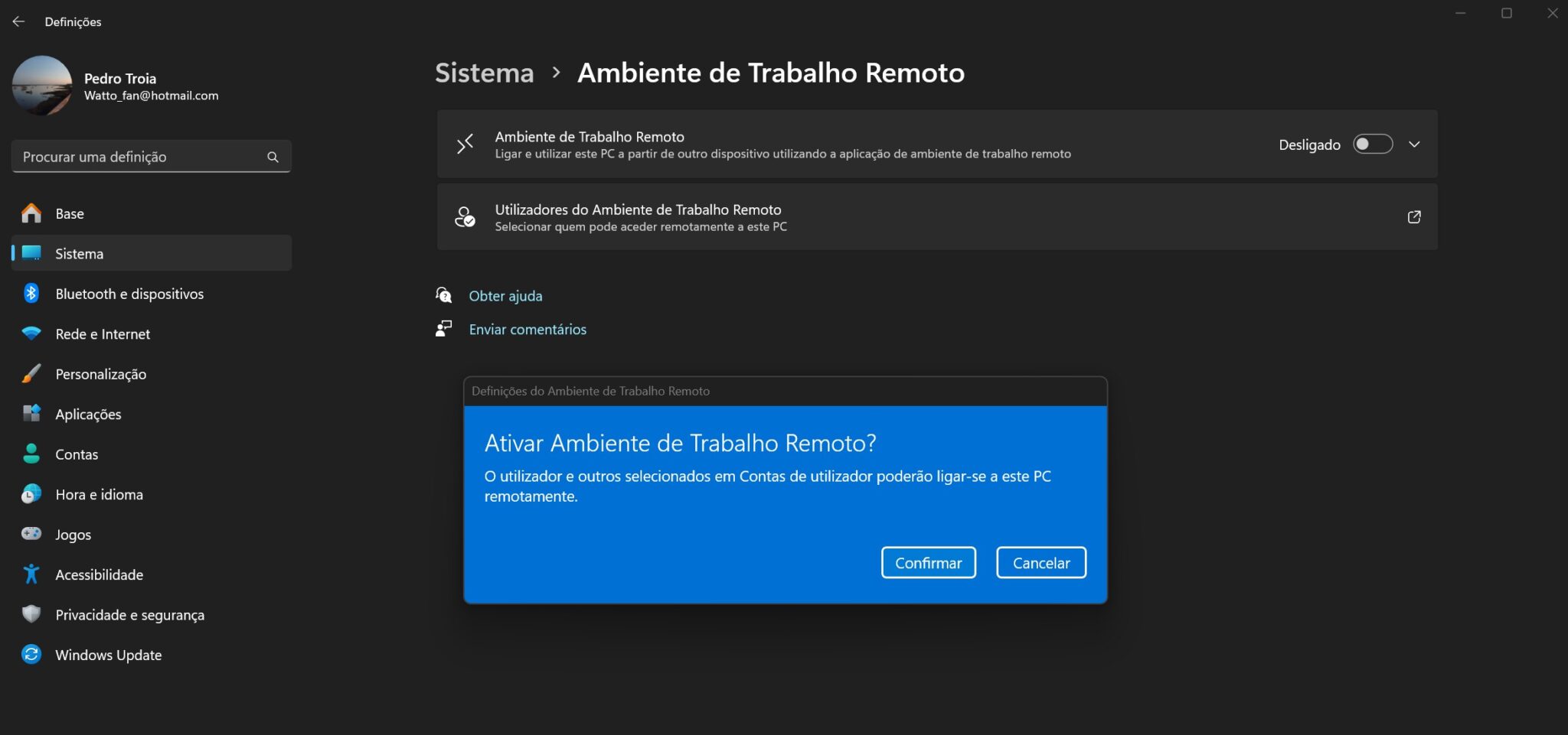 Como ligar o Ambiente de Trabalho Remoto no Windows 11