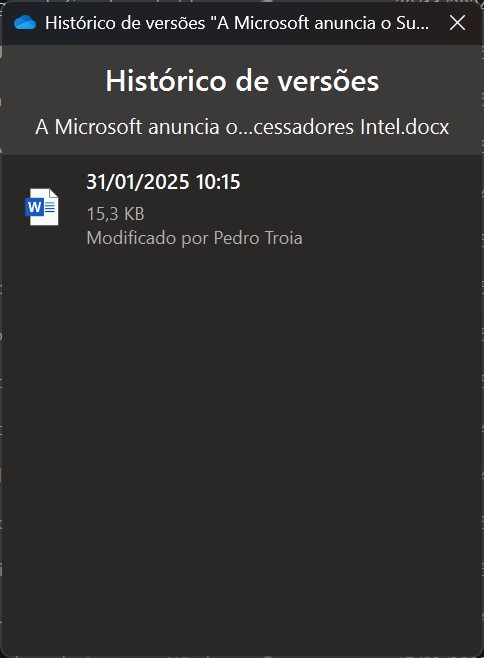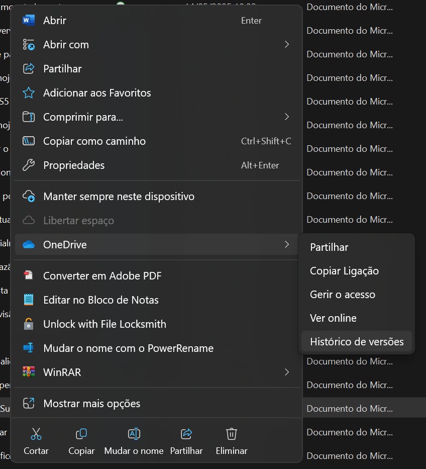 O OneDrive mantém várias versões anteriores dos seus ficheiros, permitindo-lhe revertê-los para um estado mais antigo.