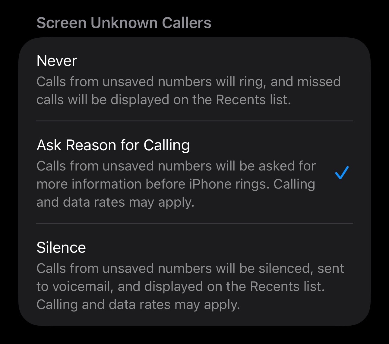 Para activar esta funcionalidade, entre nas ‘Definições’ > ‘Apps’ > ‘Telefone’ e, no separador ‘Screen Unknown Callers’, ligue a opção ‘Ask reason for calling’ (esta parte ainda não está traduzida para português na versão beta 3 do iOS). Em alternativa ao ‘Ask reason for calling’, pode optar por silenciar chamadas de números desconhecidos (‘Silence’), que serão enviadas automaticamente para o correio de voz.