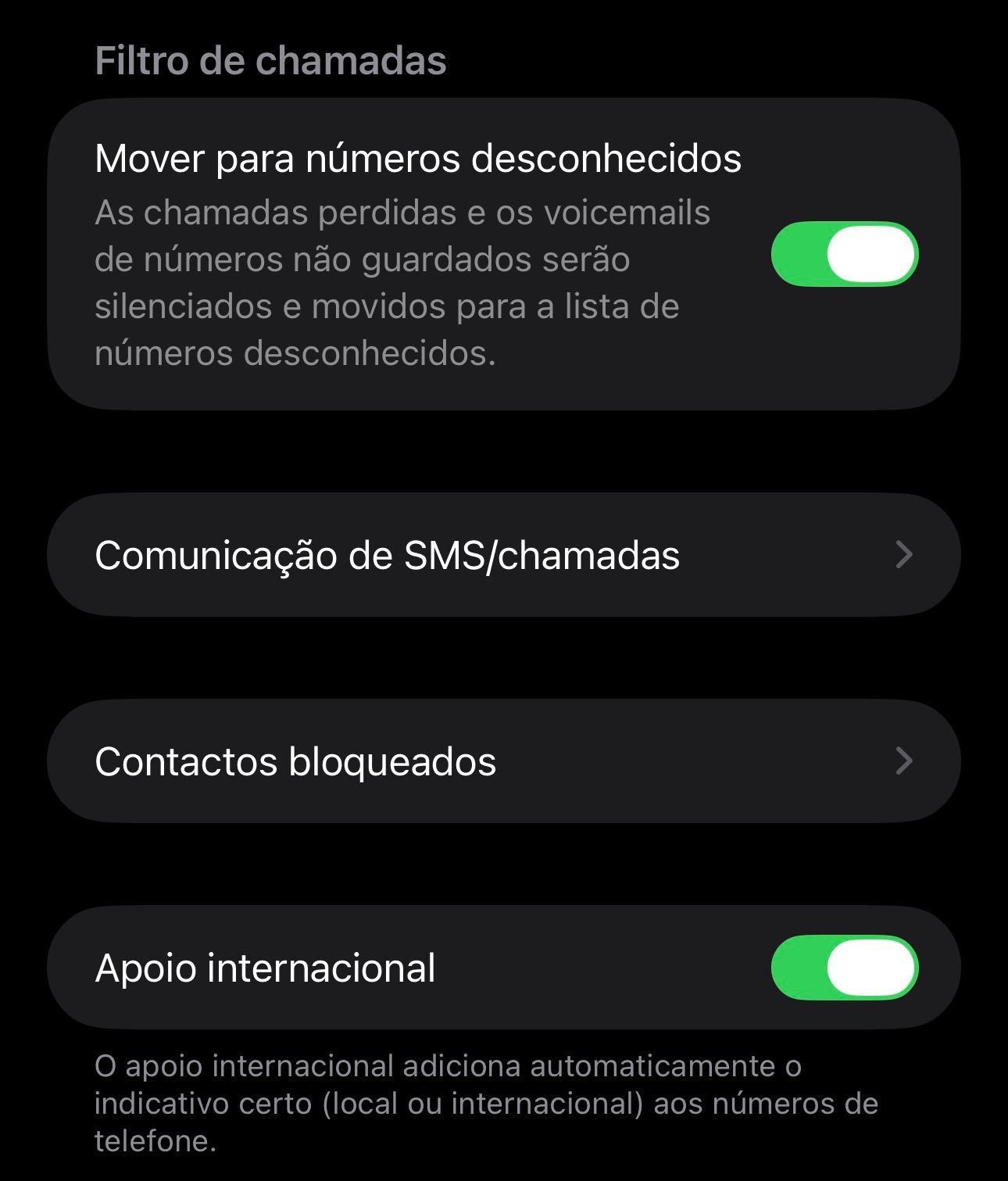 O iOS 26 também permite filtrar chamadas perdidas e mensagens de voz de números desconhecidos, colocando-as numa lista própria, separada da interface principal do ‘Telefone’. Em ‘Definições’ > ‘Apps’ > ‘Telefone’, ligue a opção ‘Mover para números desconhecidos’, no separador ‘Filtro de chamadas’. Quando fizer isto, o menu da própria app (três tracinhos), aparece a opção ‘Números desconhecidos’.