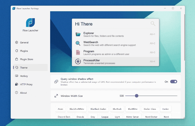 O Flow Launcher é um localizador de ficheiros e um lançador de aplicações para Windows. Com o Flow Launcher, usa uma tecla de atalho personalizável para lançar o utilitário e depois pesquisa o que quer que esteja à procura. Pode abrir aplicações, procurar ficheiros e navegar na Internet com o seu motor de busca predefinido. O Flow Launcher inclui temas, animações e sons, e até lhe permite construir as suas próprias personalizações. Existem também plugins criados pela comunidade para acrescentar funcionalidades.