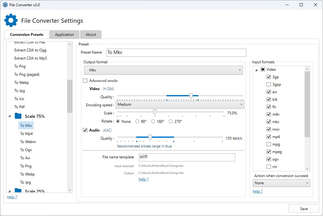 A única ressalva é que, para converter ficheiros MS Office, terá de ter o MS Office instalado. Pode personalizar a ordem da aplicação dentro do menu de contexto e até adicionar ou remover predefinições.
