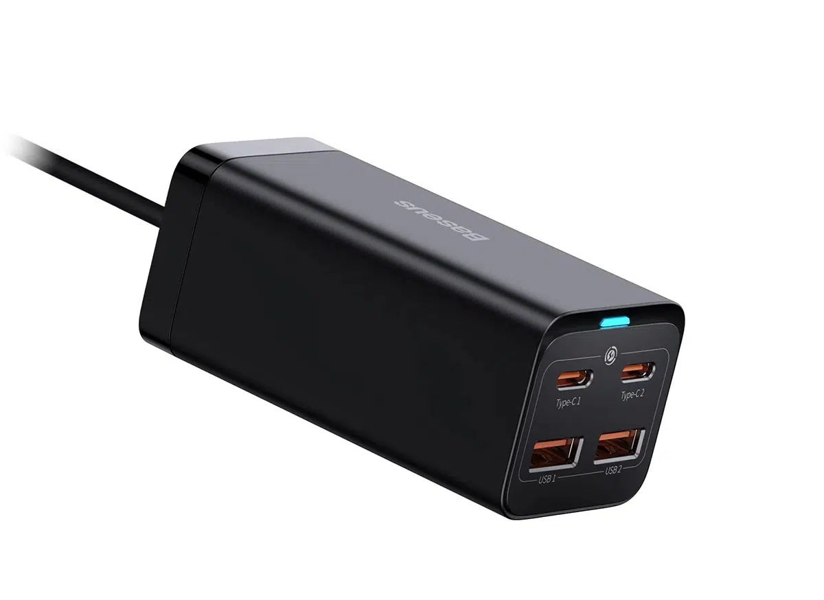 Quem quiser passar ao próximo nível em casa ou no escritório (em movimento, o powerbank será sempre rei) tem de investir numa solução como esta: um hub que permite, não só carregar smartphones, mas também qualquer gadget USB-A ou USB-C, o que significa que até vamos poder fazer isto com um laptop. Neste caso, o Four-Port Output da Baseus tem quatro portas destas e, como o nome indica, uma potência máxima de carregamento de 100 W – contudo, apenas se usarmos uma das duas USB-C. À medida que vamos ligando mais dispositivos, a velocidade diminui, claro. Por exemplo, se tivermos um smartphone e um computador ligados às duas entradas USB-C, baixa para 95 W (60 + 35 W); caso ocupemos todas as ligações disponíveis, as duas USB-A fazem 15 W e uma das USB-C baixa para 20 W, mantendo-se a outra nos 60. Há alguma matemática a fazer e, para facilitar a compreensão destas contas, este carregador podia ter um pequeno ecrã monocromático que indicasse a potência, em tempo real, das várias configurações. O equipamento, em si, tem essa indicação impressa num dos lados, mas o texto é muito pequeno, extenso e de compreensão complicada para quem não domina o tema.