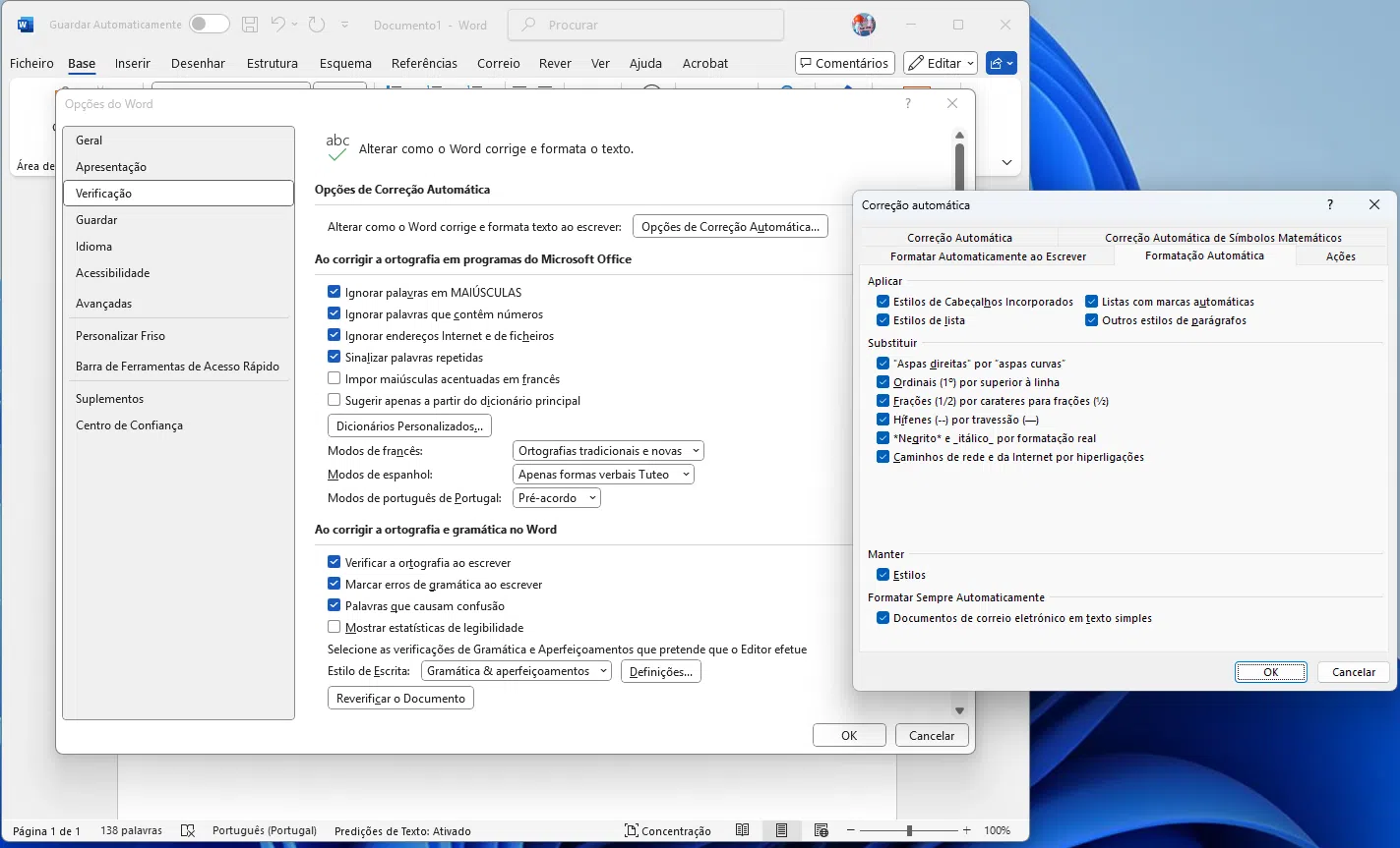 Clique em ‘Ficheiro’ > ‘Opções’ > ‘Verificação’. Em ‘Opções de Correção Automática’, clique no botão com o mesmo nome; na janela, entre no separador ‘Formatação Automática’ [2] e escolha ‘Negrito e itálico com formatação real’. No final, faça ‘OK’. A partir dessa altura, as palavras que escrever com asteriscos em ambos os lados serão automaticamente alteradas para negrito; se for com sublinhados, mudam para itálico.