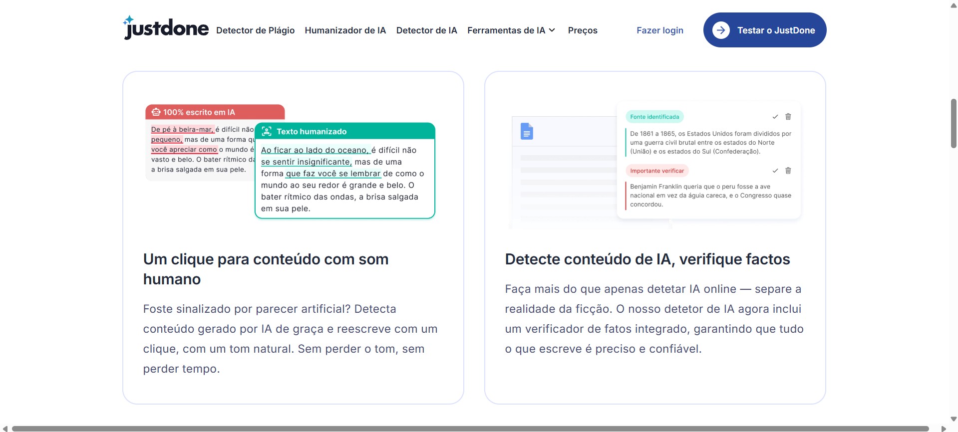 Assim, é possível ajustar a redação, tornar o texto mais humano e garantir que o público o reconhece como natural. É com o uso de detetores como a JustDone que os utilizadores conseguem verificar se o conteúdo gerado é autêntico.