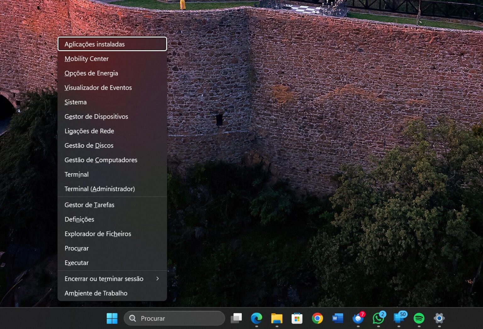 O menu de ‘Ligação Rápida’ é um atalho poderoso para aceder a ferramentas administrativas e de sistema cruciais sem ter de procurar no Painel de Controlo ou nas Definições. É um acesso directo a utilitários essenciais do Windows.