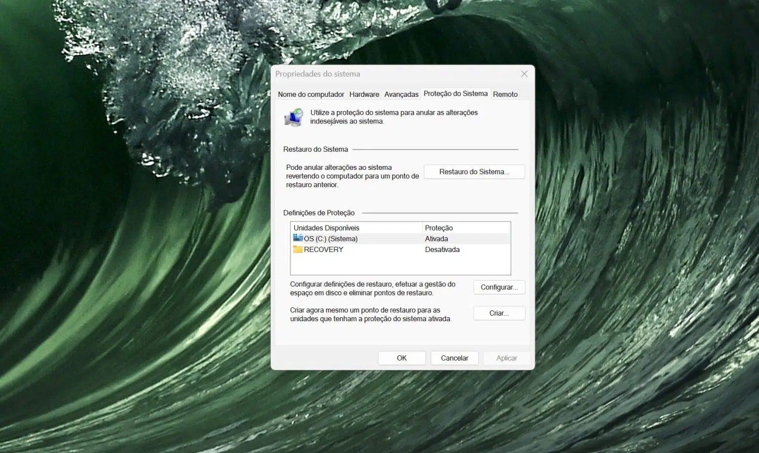 Antes de instalar software novo ou de fazer alterações importantes ao sistema, é sempre uma boa prática criar um Ponto de Restauro. Se algo correr mal, pode reverter o seu PC para um estado anterior de funcionamento.