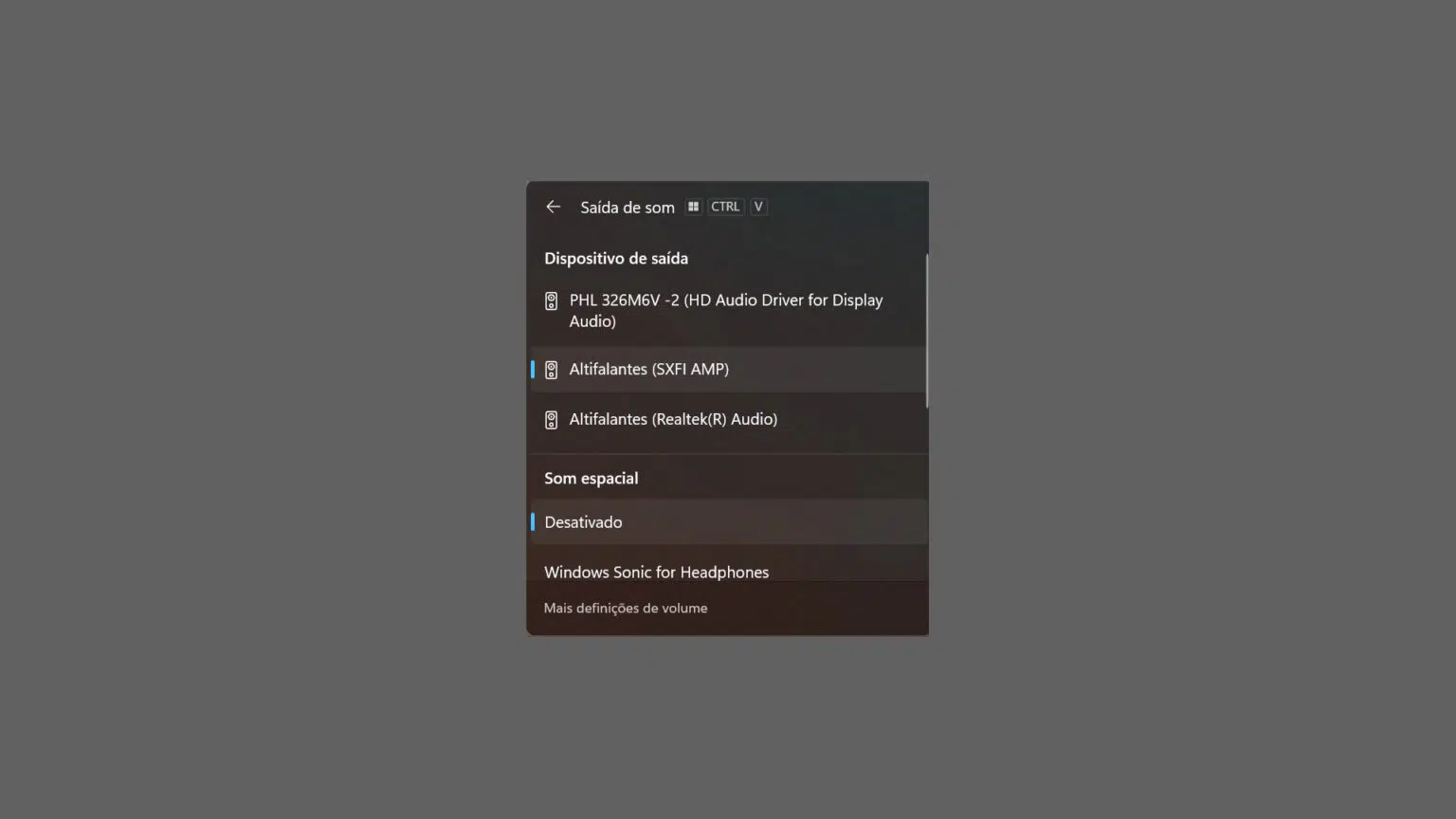 - Seleccione a Saída: Uma lista dos seus dispositivos de saída de áudio disponíveis será exibida.