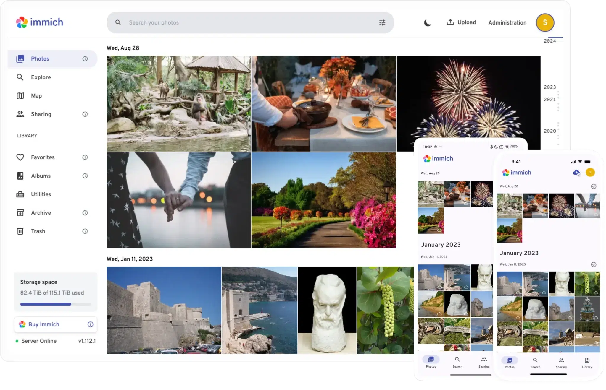 Descontente com as soluções existentes, resolveu pôr mãos à obra e desenvolver uma ferramenta de backup simples, com uma aplicação móvel nativa que permitisse visualizar fotos e vídeos de forma eficiente. Desde a sua criação em 2022, o Immich tornou-se um projecto muito bem recebido pela comunidade: representa um compromisso com a privacidade e com a própria comunidade. É uma declaração de que os nossos momentos pessoais merecem ser controlados por nós mesmos. O resultado é uma aplicação que valoriza três princípios fundamentais: privacidade, preservação de memórias e facilidade de utilização.
