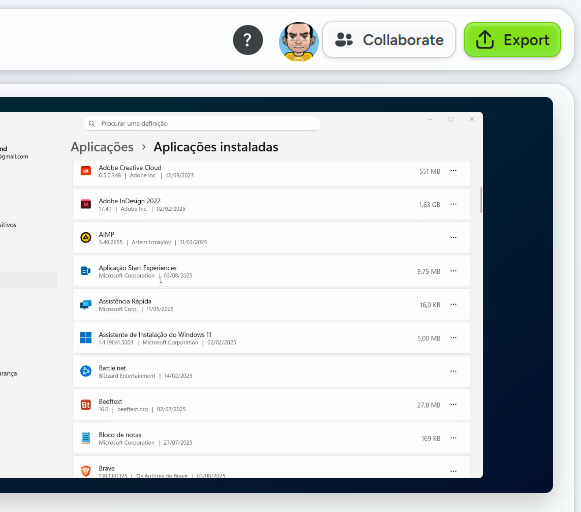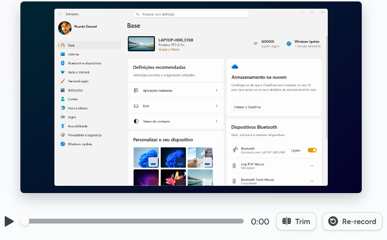 5 –Quando estiver pronto, clique no botão vermelho ‘Start Recording’: o Camtasia faz uma contagem decrescente a partir de cinco e começa a gravar o que se passa no ecrã. Mude para a janela ou programa que seleccionou (neste caso, as ‘Definições’) e vá fazendo as acções que quiser – aqui, o que queríamos mostrar era a forma de desinstalar software no Windows. Quando terminar, volte ao navegador e carregue no botão ‘Stop’. Se estiver a gravar o ecrã inteiro, este regresso ao navegador também poderá ter sido captado, por isso vamos agora explicar como cortar as partes que não interessam.