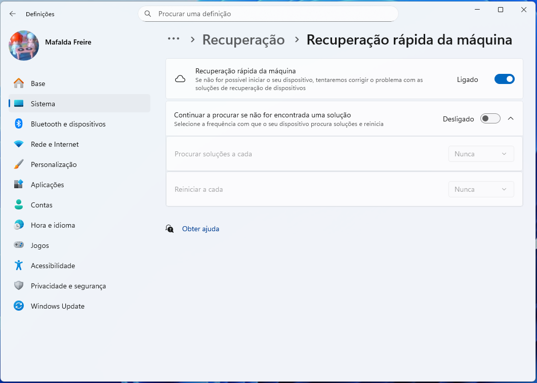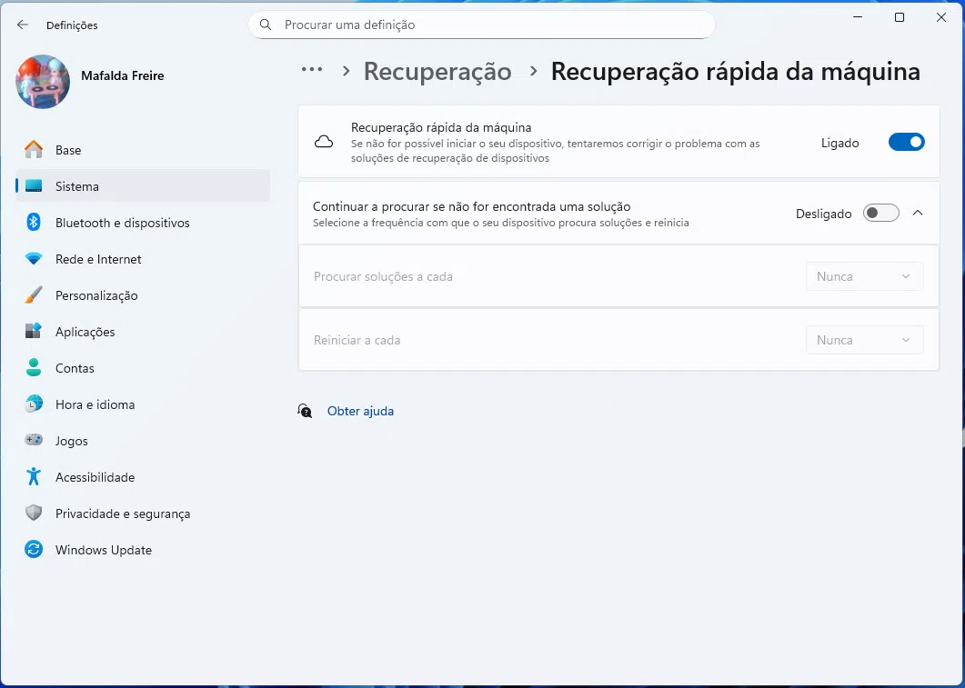Esta opção está activada por pré-definição para os utilizadores do Windows 11 Home, mas os utilizadores Pro têm de a activar manualmente: vá a ‘Definições’ > ‘Sistema’, ‘Recuperação’ >’Recuperação rápida da máquina’ e ligue a opção. Certifique-se de que o seu PC consegue ligar-se à Internet durante a recuperação, caso contrário não será possível usar esta funcionalidade para ter acesso às correcções.
