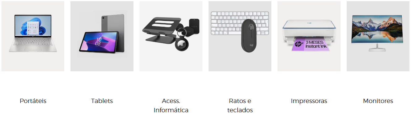 Na secção de Informática, encontrará computadores portáteis, de secretária e periféricos (como monitores, ratos, teclados e hubs USB), assim como componentes e demais acessórios assinados por marcas de referência.