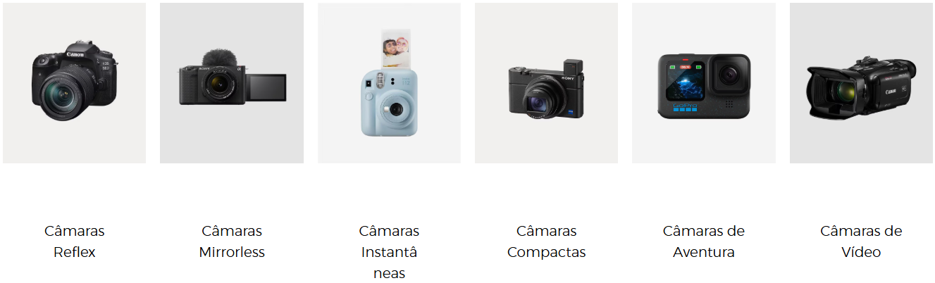 Quer seja um simples entusiasta ou um fotógrafo profissional, a categoria de Fotografia e Vídeo do El Corte Inglés oferece-lhe câmaras fotográficas (reflex, CSC, instantâneas, etc.), câmaras de vídeo, objetivas, tripés e rótulas, entre outros acessórios, o que constitui uma excelente oportunidade para atualizar o seu equipamento com menor impacto orçamental.