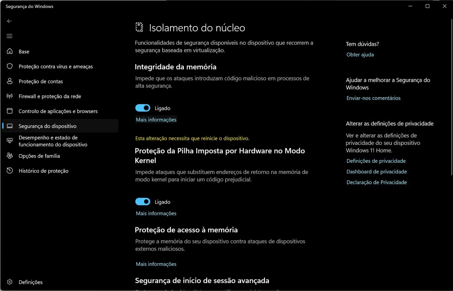 A Integridade da Memória (parte do Isolamento de Núcleo) é uma funcionalidade de segurança avançada que utiliza o sistema de virtualização do PC para impedir que código malicioso de alto risco, como malware ou ransomware, sejam injectados em processos críticos do sistema. Activá-lo oferece uma camada de protecção robusta ao kernel do Windows.