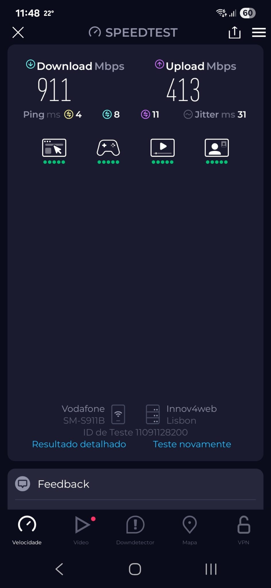 O Ookla Speedtest é fácil de usar, funciona no browser e tem aplicações para Windows, macOS, Android e iOS. Recentemente, as apps mobile foram actualizadas para fornecer resultados de teste mais detalhados através de uma nova funcionalidade chamada ‘Experience Ratings’ (avaliações de experiências, em tradução livre), que avalia a adequação da ligação a diferentes actividades online. A Ookla também melhorou a integração da aplicação Speedtest com a sua ferramenta Downdetector, que monitoriza interrupções em milhares de serviços em todo o mundo, incluindo ISP. Isto ajuda-o a determinar se uma ligação à Internet lenta e pouco fiável é causada por um problema com o seu router, smartphone ou com o seu fornecedor de Internet.