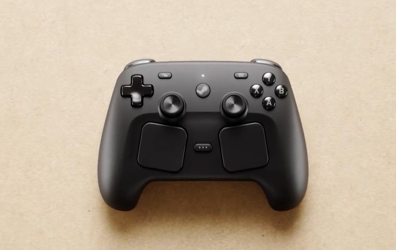 O Steam Frame e o Steam Machine também suportam o futuro Steam Controller 2. Ao contrário do Steam Controller original não convencional, o novo tem um layout mais tradicional, ao mesmo tempo que revê os trackpads presentes no seu antecessor e no Steam Deck. Os thumbsticks magnéticos TMR devem evitar os problemas de stick-drift que têm afectado vários comandos modernos. A mira giroscópica é activada através de sensores de toque capacitivos montados na parte inferior.