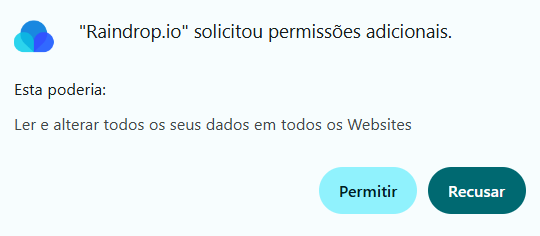 Ao clicar em ‘Destaques’ pela primeira vez, o Raindrop avisa que o serviço precisa de aceder aos dados das páginas Web que visita. Isto é diferente de apenas ler nomes e endereços, pelo que o aviso serve para confirmar que está ciente dessa permissão — aceite e clique em ‘Permitir’.