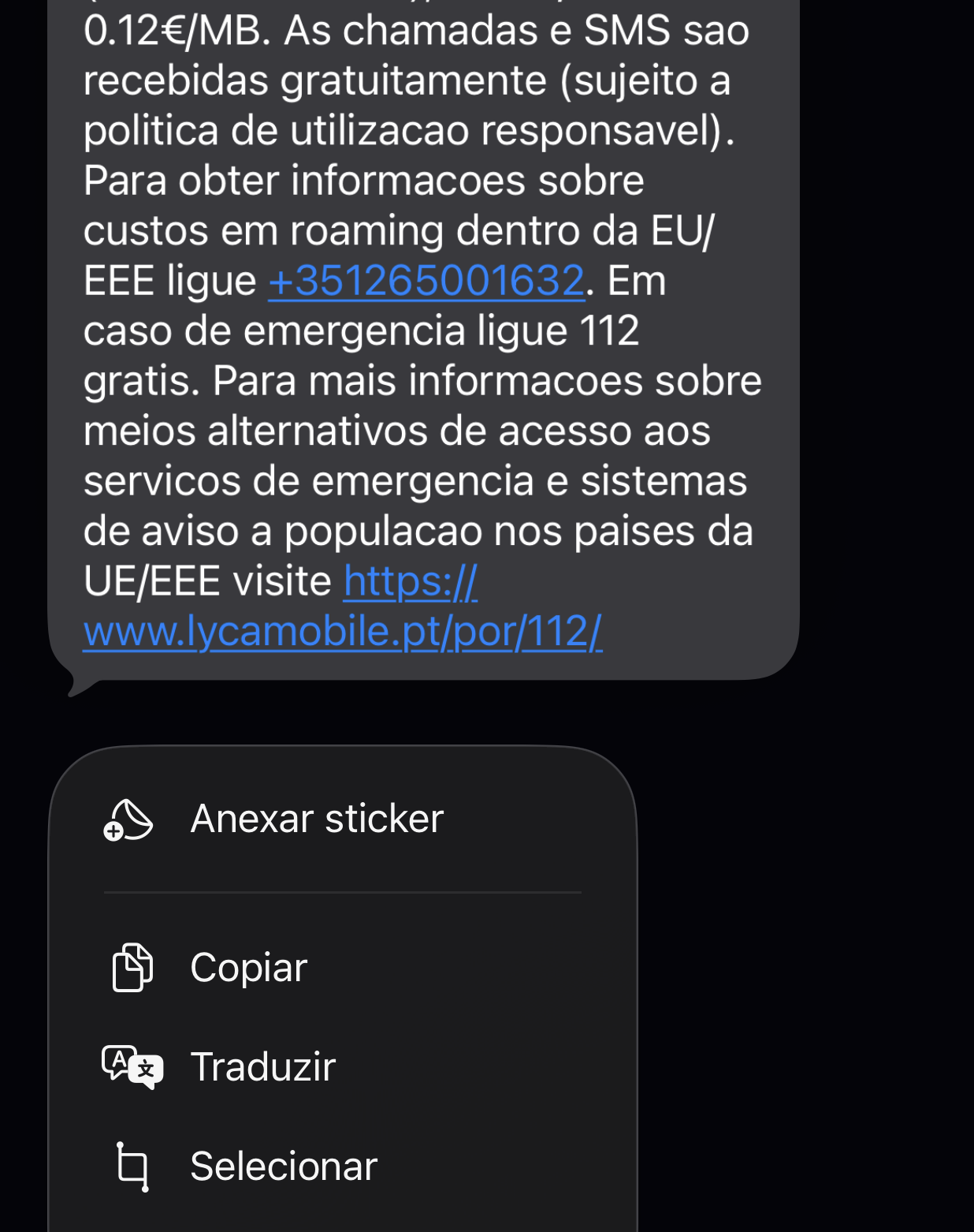 No iOS 26, é possível copiar apenas uma parte de uma mensagem, em vez do texto completo. É útil, por exemplo, quando alguém envia um link, uma morada ou outra informação da qual apenas precisamos de uma parte. Para fazer isto, mantenha o dedo sobre uma mensagem e toque em ‘Seleccionar’. Depois, arraste os limitadores azuis para escolher exactamente o que quer copiar.