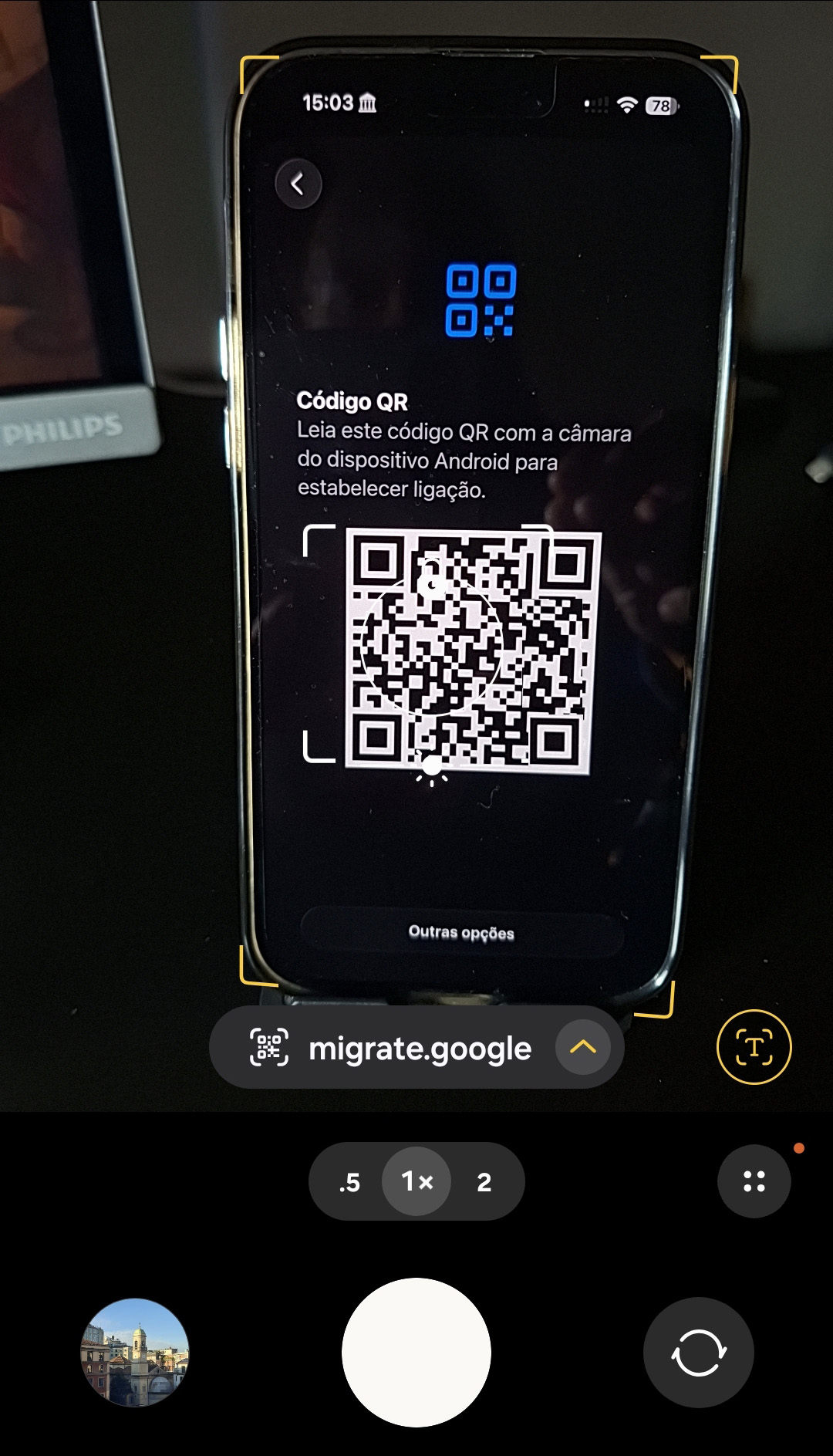 4 – Assim que apontar a câmara do Android para este código QR, surge um link no ecrã: ‘migrate.google’. Toque aqui para começar o processo de transferência; logo de seguida, surge um aviso a dizer que o código foi lido e, passados alguns segundos, o iPhone mostra um ecrã de selecção do número a transferir (pode haver mais que um eSIM no Android) – basta escolher. Quando o processo terminar, o eSIM do Android será automaticamente desactivado.