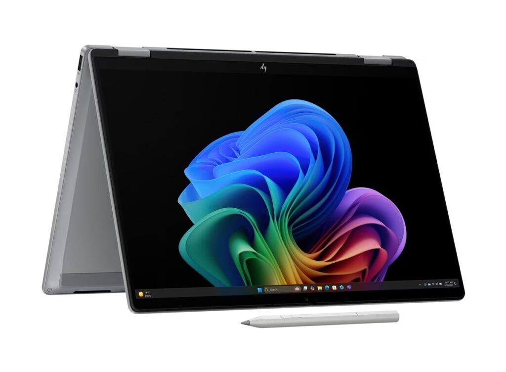 O Omnibook X Flip é um modelo de gama média: tem 16 GB de RAM, um processador Intel Ultra 7 e um SSD com 1 TB. Quanto a gráficos, estão a cargo da GPU integrada no processador. Apesar de ter espaço, o teclado não vem com a parte numérica, pois está ladeado de duas colunas com um tamanho generoso, neste contexto. O toque das teclas é interessante, embora tenham um curso curto, o que as torna um pouco mais barulhentas que as de outros laptops que têm passado por cá.