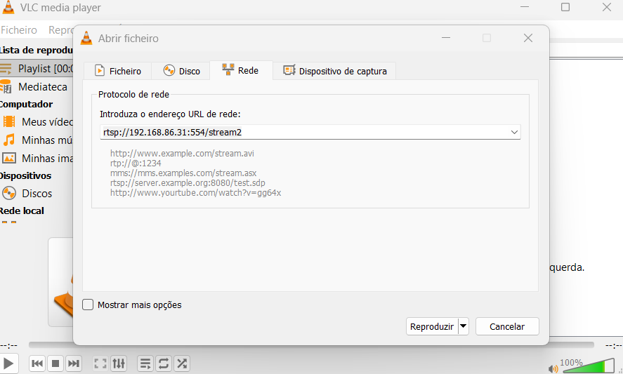 Agora, vamos testar o stream remoto. Existem dezenas de programas capazes de mostrar vídeo via RTSP, mas escolhemos o VLC por estar disponível gratuitamente para Windows, macOS e Linux. Com o programa aberto, use a combinação de teclas ‘Ctrl + N’ e escreva o endereço IP que viu no passo anterior, desta forma: rtsp://192.168.86.31:554/stream2 (ou seja, junte ‘rtsp://’ no princípio e ‘:554/stream2’ no final). Nesta parte também pode usar ‘stream1’ (que oferece a melhor qualidade) ou ‘stream3’ (que tem menos). O stream2 tem uma qualidade intermédia. Clique em ‘Reproduzir’ e faça o login com os dados que definiu no passo anterior; assim que o fizer, começa a ver a transmissão da câmara.