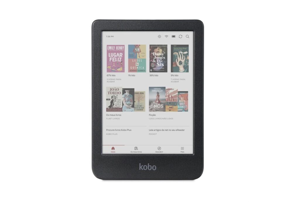 A Kobo já tinha o Libra com este conceito, mas agora junta à colecção um leitor mais acessível, com um ecrã mais pequeno: de sete passa a seis polegadas. O resultado é um modelo mais compacto, com um ecrã e-ink Kaleido 3 (4096 cores), corpo em plástico (com uma textura rugosa atrás que nos dá mais aderência) e 174 gramas, o que o torna especialmente leve para as suas dimensões. O que aqui não há, mesmo, são botões físicos, pelo que vamos ter sempre de estar a tocar no ecrã para mudar de página: a experiência não é a mais prática, preferimos ter controlos físicos para fazer isto. Com isto, a Kobo consegue aumentar o rácio ecrã/moldura, mas não nos parece que os milímetros poupados façam assim uma diferença tão grande.