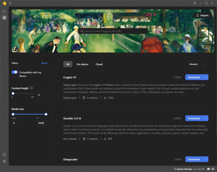 Se quiser usar modelos de linguagem no seu PC, pode escolher o que quiser a partir da lista que está no programa (depois de escolhido, a instalação do modelo é completamente automatizada para facilitar), depois é só escolhê-lo nas definições e começar a usá-lo.