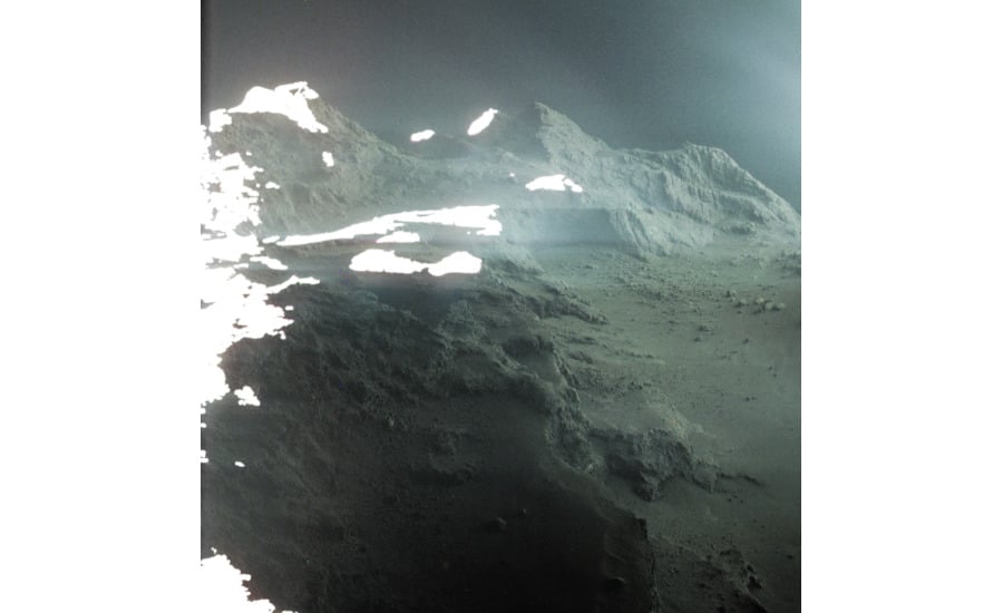 Foto da ESA mostra parte do cometa 67P/Churyumov–Gerasimenko vista pela sonda espacial Rosetta